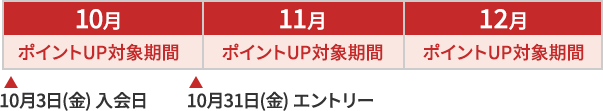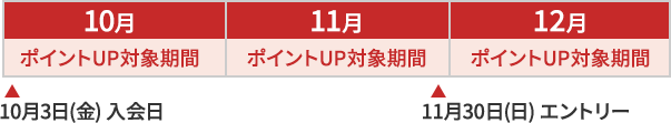 10月入会の場合、12月までにエントリーいただくと、10月~12月のご利用金額がポイントアップの対象となります。